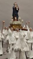 Sono in tanti, indossano dei sai bianchi, fermati dalle cinture nere di ispirazione agostiniana da cui deriva il nome con cui sono conosciuti da secoli: i “cinturati”, ovvero i membri della Venerabile Arciconfraternita di Santa Monica. E sono tutti incappucciati.