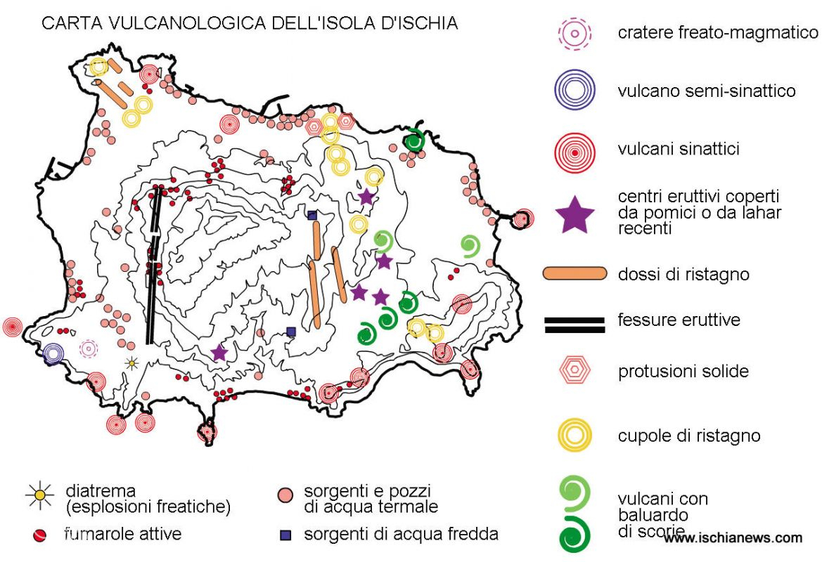 I centri eruttivi individuati sono Fiumicello, Terra Murata, forse Montanto nella parte centrale e ora sepolto , Pozzo Vecchio e, ultimo e più recente, Solchiaro. Centri eruttivi sempre nuovi, disposti in senso orario e inizialmente separati gli uni dagli altri, come un piccolo arcipelago. Nel tempo, a partire da circa 75mila anni fa, i materiali piroclastici (pomici arrivarono anche da Ischia) hanno via via colmato gli spazi tra un edificio vulcanico e l’altro, formando l’isola com’è oggi.
